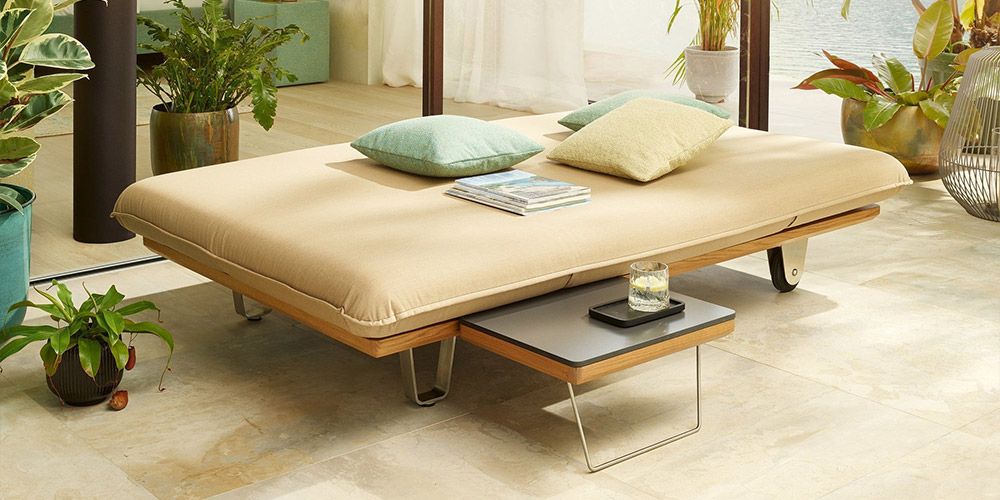 Verwandeln Sie Ihren Garten in eine Wohlfühloase mit der flexiblen Butterfly-Serie. Die einzigartige Sonnenliege “Sunbed” passt sich Ihren Wünschen an und lässt sich an drei Seiten in zwei Positionen verstellen. Lehnen Sie sich zurück und genießen Sie die Sonne in Ihrem ganz persönlichen Komfortwinkel. Die hochwertigen Materialien machen die Butterfly-Serie zum Blickfang in Ihrem Garten. Die Liege ist mit wetterfesten Sonnensegelstoffen bezogen, während der Rahmen aus lasierter Eiche und Edelstahl für Langlebigkeit und Eleganz sorgt. Der passende Hocker “Sunseat” bietet zusätzlichen Komfort und lässt sich ebenfalls in zwei Positionen verstellen. Beide Möbelstücke sind mit Rollen ausgestattet, um sie mühelos zu bewegen.